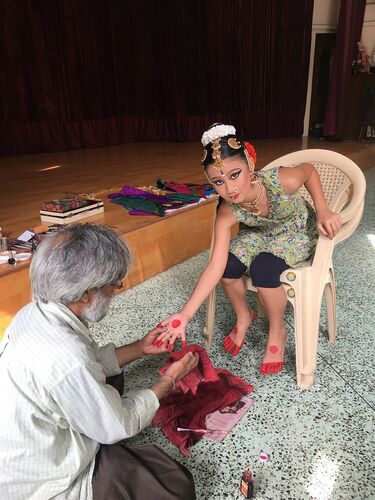 パフォーマンスがあるときは、3時間前から準備を始めるようにしている。 髪の毛をまとめて付け毛を付けて、 地毛と付け毛の境目が分からないようにネットで巻いて、 沢山のヘッドアクセサリーを紐でくくりつけて、 (小学生だしピアスの穴が空いていないから…